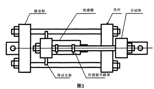 傳感器升降架由柔性繩索和調線裝置組成。柔性繩索用于支撐傳感器。調線裝置用于收放柔性繩索的長短調整傳感器的中心位置?;瑒又Ъ苡芍Ъ芎桶虢劁撝檩S承組 支架固定在主動架 當主動架移動.